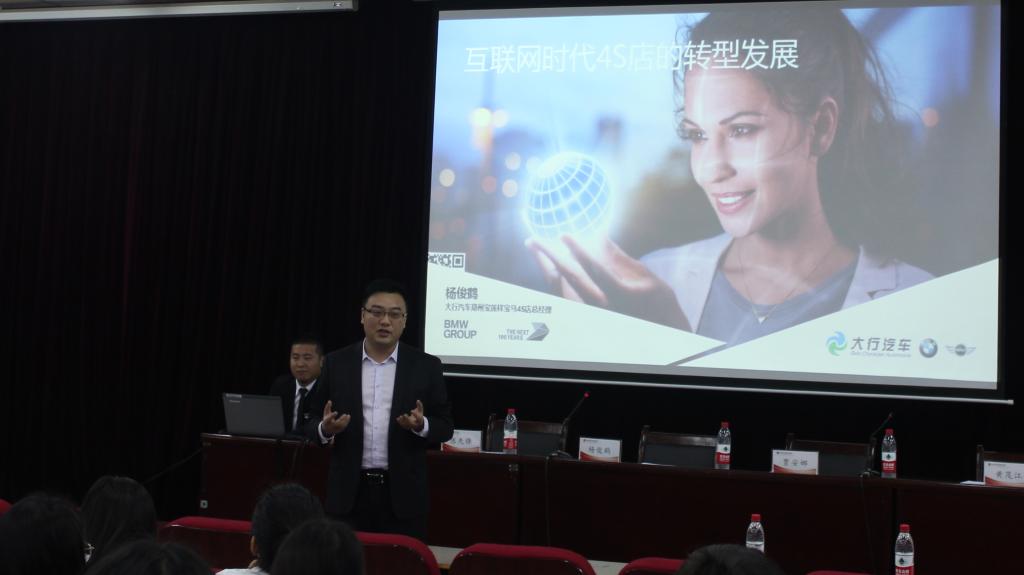 2018年5月21日上午,郑州宝莲祥宝马汽车销售服务有限公司总经理杨俊鹤前来讲学,在英才校区E110作了题为《互联网时代的汽车4S店转型发展》的报告。太阳集团tyc5997副院长陈先锋出席会议,学院师生约130人聆听了报告。报告会由太阳集团tyc5997汽车营销教研室主任任林洁主持。